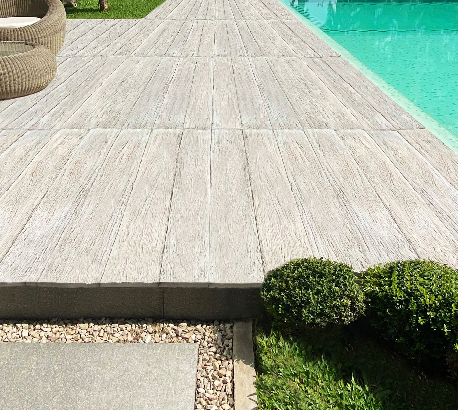 Pieza plana cementicia con alma de hierro en su interior, caracterizado por imitar la textura y calidez de la madera natural.