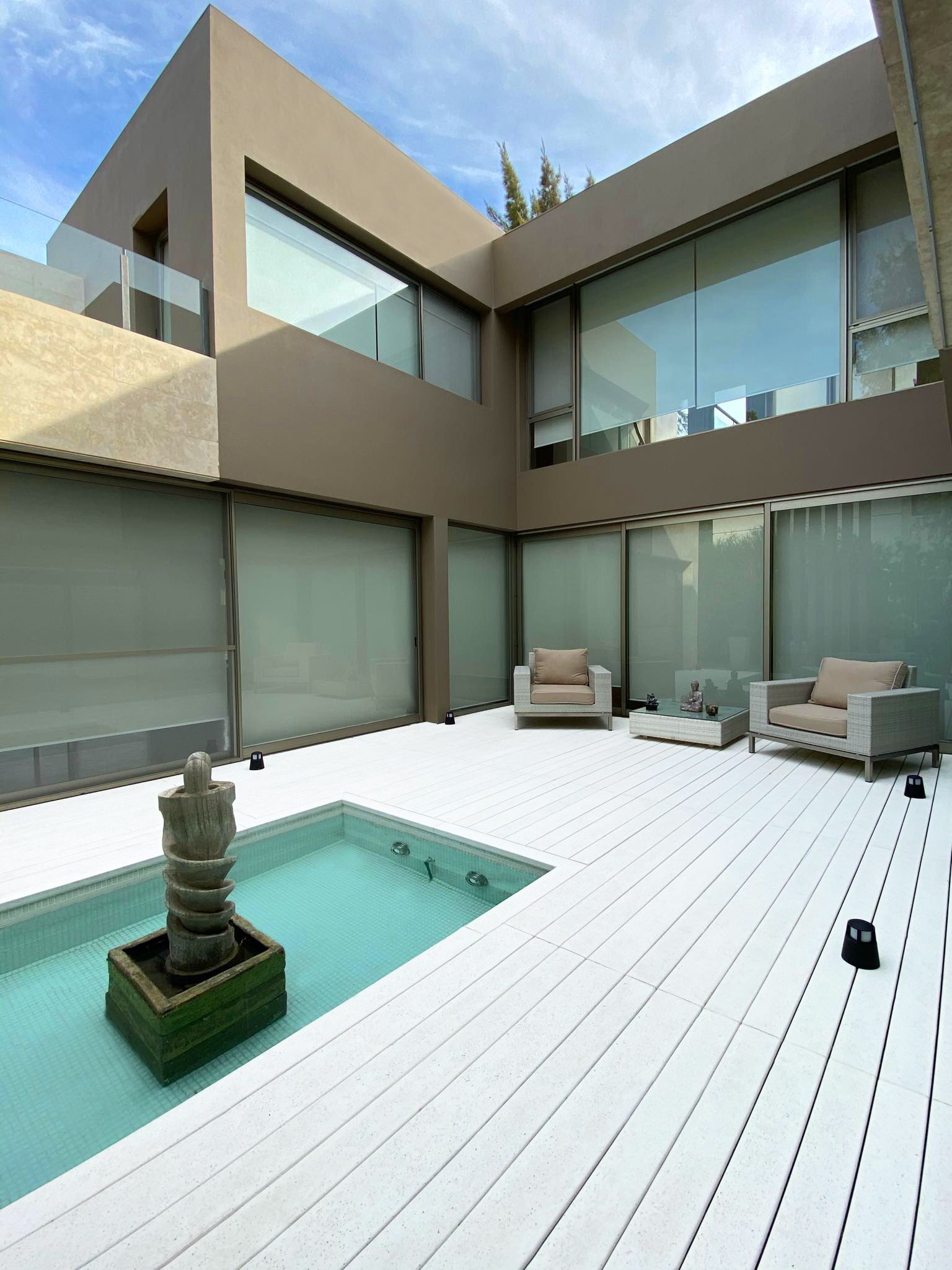 Deck puede utilizarse de diferentes formas en espacios exteriores. Piscinas, terrazas, galerías, entradas principales de casas, durmientes para realizar caminos y conectar espacios entre sí, entre otros. Su colocación puede ser flotante, sobre fajas cementicias o estructuras metálicas, con una distancia de apoyo de hasta 0.50m; o bien con adhesivo cementicio sobre carpeta fratazada o contrapiso. El diseño y material empleado permiten una fácil limpieza y drenaje del agua. Los cortes se realizan con amoladora como cualquier piso cementicios, como así también perforar para anclajes.
