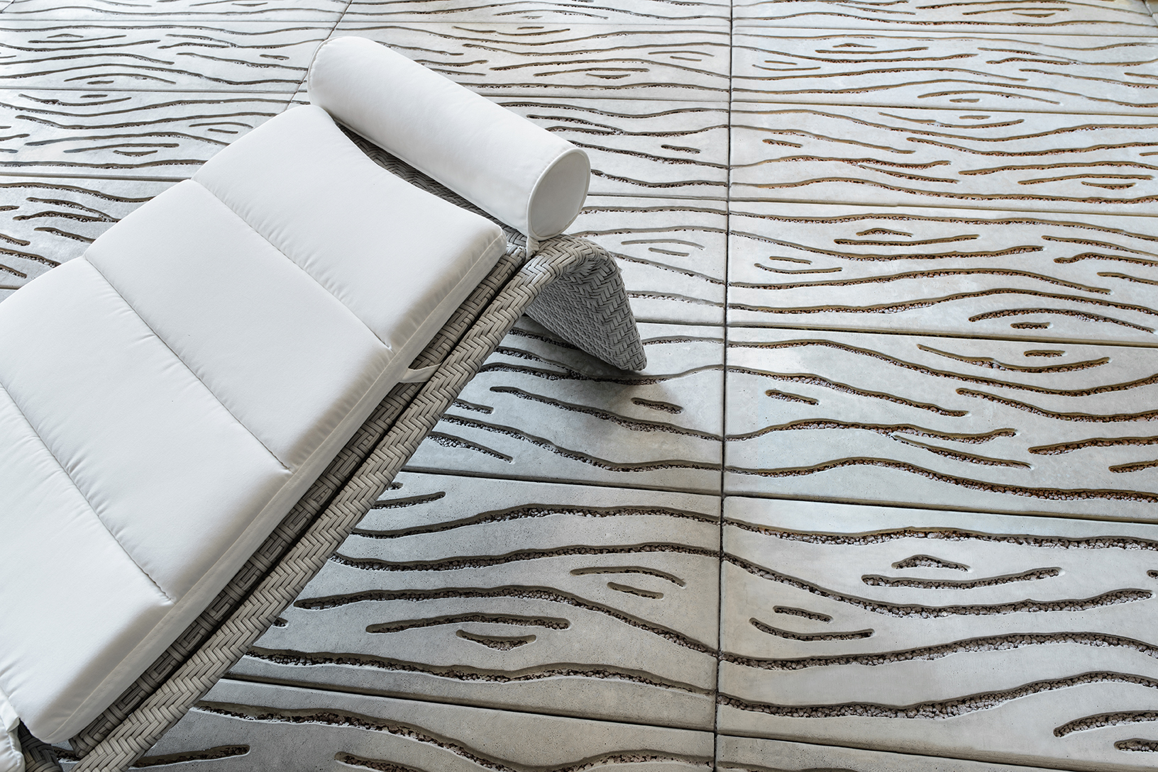 La capa superior es sobre relieve, con terminación de cemento alisado, que genera espacios re hundidos, permitiendo el escurrimiento del agua.